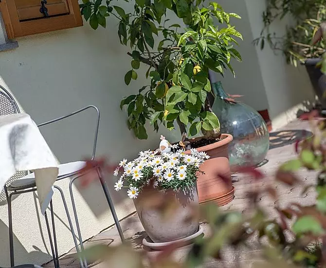 - Ruhigere Lage umgeben von Bergen und Weinreben