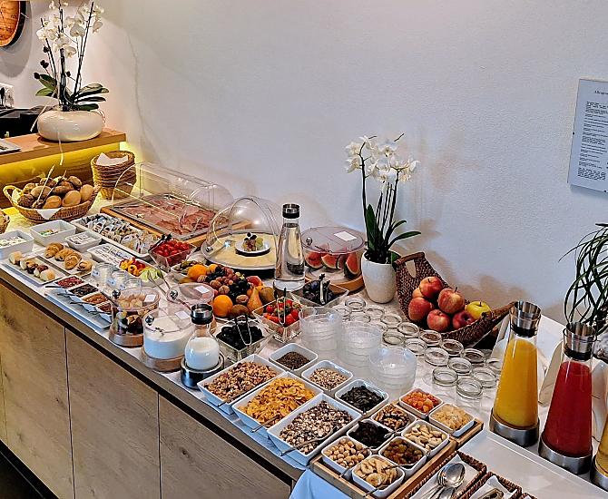 - Qualitativ hochwertiges Frühstücksbuffet, auch im Garten möglich