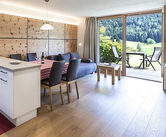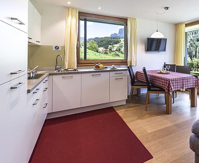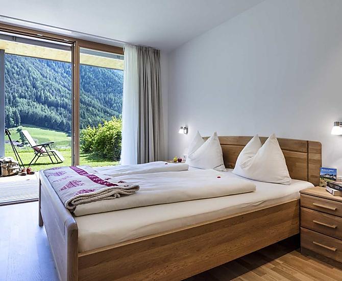 Mitten im Grünen gelegen, umgeben von herrlicher Natur und mit einem einmaligen Ausblick auf die Geislerspitzen und die Raschötzalm, garantiert der Peterwieshof seinen Gästen absolute Ruhe und Erholung.