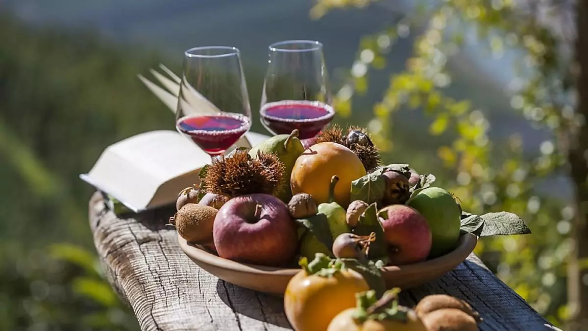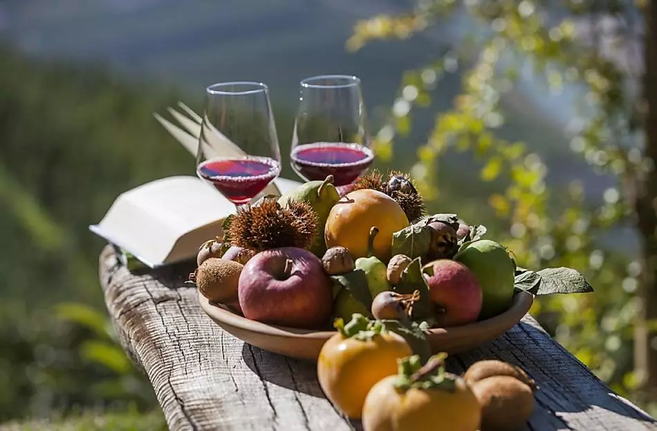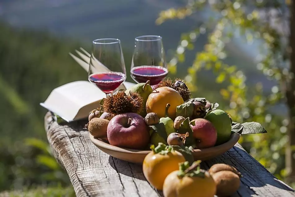• Frisches Obst je nach Saison (Äpfel, Beeren, Birnen, Kastanien, Kirschen, Nüsse, Pfirsiche)