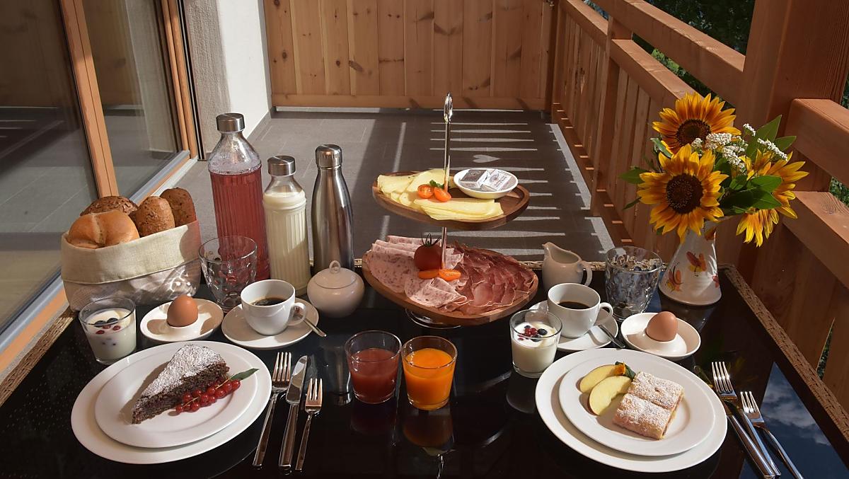 - Hofeigene Produkte beim Frühstück: Speck, Eier, Fruchtaufstriche, Sirup, Fruchtsäfte, Kräutergewürze, Backwaren, Frisches Gemüse je nach Saison, Frisches Obst je nach Saison
