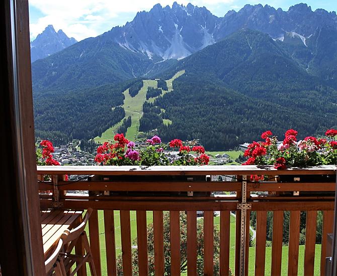 Ein beeindruckendes Panorama bietet sich, wenn Sie bei uns auf dem Balkon stehen. Vor Ihnen erstreckt sich der mächtige Haunold und die Dreischusterspitze, der höchste Berg der Sextner Dolomiten (Unesco Weltnaturerbe).