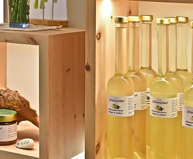 - Sirup (Holunderblütensirup, Melissensirup, Pfefferminzsirup, Zitronenmelissensirup)