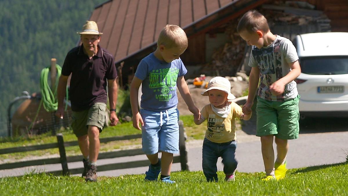 Unsere steilen Wiesen werden zweimal im Jahr gemäht. Damit wir in der Zwischenzeit dieses wertvolle Futter für den Winter ernten können, gehen unsere Rinder und Schafe im Sommer auf die Alm. Dort verbringt auch unser Opa Sepp mit den Hunden seit nunmehr über 30 Jahren die Sommermonate als Schaf- und Kuhhirte. Ein Besuch auf den Almen bietet Gelegenheit für sehr schöne Ausflüge und Wanderungen.