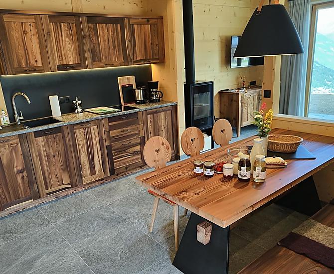- Hofeigene Produkte beim Frühstück: Milch, Joghurt, Käse, Speck, Eier, Fruchtaufstriche, Sirup