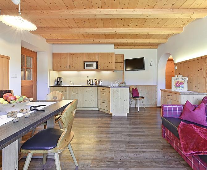 Wenn Sie sich nach einem erholsamen Urlaub in einer landschaftlich ganz besonders reizvollen und sehr ruhigen Lage sehnen, ist ein Bauernhofurlaub unterhalb der Seiser Alm die perfekte Lösung für Sie. Hier können Sie gemeinsam mit Ihrer Familie hautnah erleben, wie ein typisch Südtiroler Bauernhof „funktioniert“. Schauen Sie beim Füttern unserer Tiere zu. Schnuppern Sie an den herrlich duftenden Kräutern in unserem Bauerngarten und kosten Sie von der köstlichen Marmelade, die wir auf unserem Hof für Sie herstellen. Unsere kleinen Gäste dürfen nach Herzenslust herumtollen, die niedlichen Kätzchen streicheln oder in unserem großen Erlebnis-Sandkasten ihre Baukünste ausprobieren! So wird der Bauernhofurlaub unterhalb der Seiser Alm zu einem unvergesslichen Erlebnis.