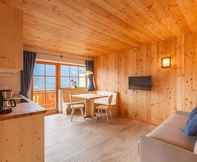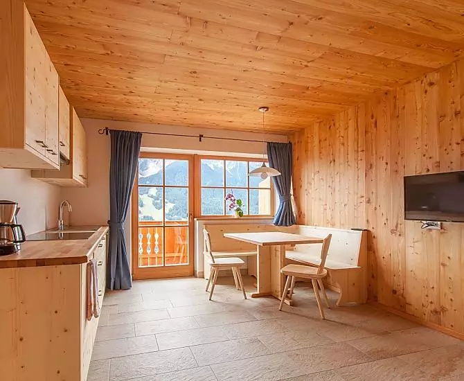 Fern vom Alltag und dem Gewohnten können Sie sich in unserer ruhigen und idyllischen Lage inmitten der Bergwelt der Sextner Dolomiten erholen und entspannen. Sie genießen frische und reine Bergluft mit traumhaftem Panoramablick auf die Dolomiten und unseren Hausberg, den Haunold.