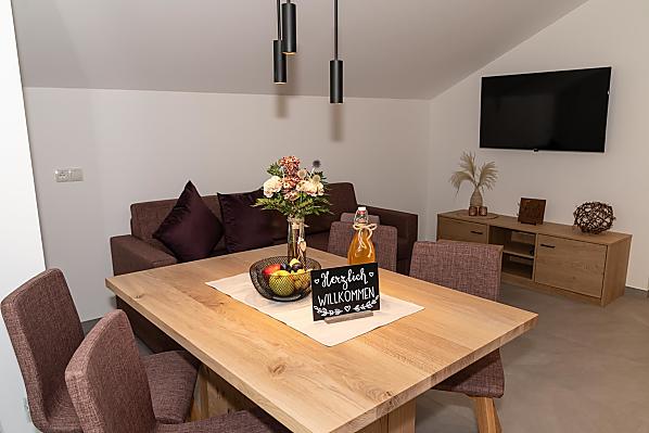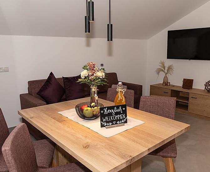 - Hofeigene Produkte beim Frühstück: Eier, Fruchtaufstriche, Fruchtsäfte, Frisches Gemüse je nach Saison, Frisches Obst je nach Saison