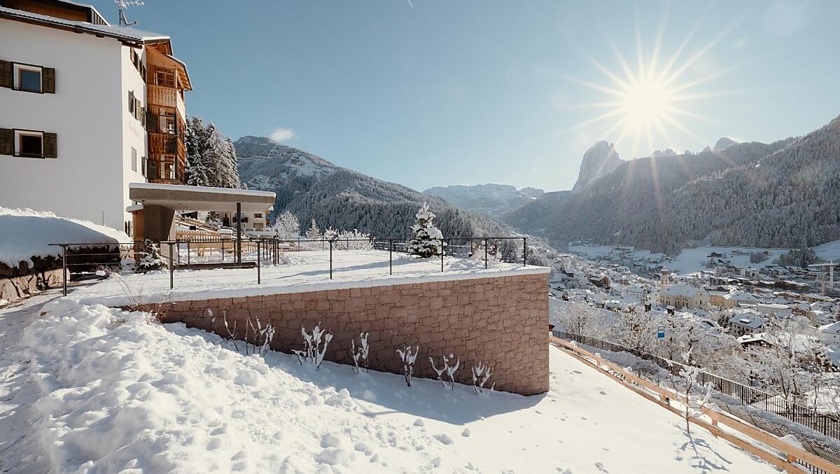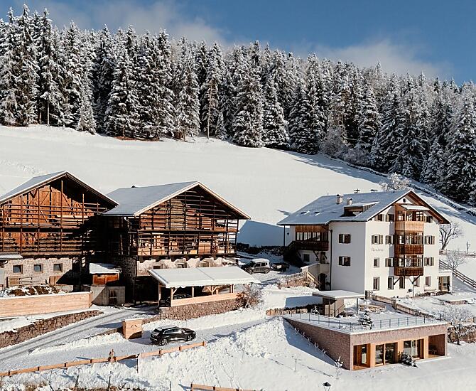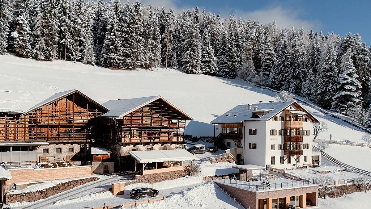 Nehmen Sie die auf der Brennerautobahn A22 die Ausfahrt Klausen/Gröden und fahren dann rund 20 Minuten in Richtung Gröden. In St. Ulrich kommen Sie zum Kreisverkehr vor dem Tunnel. Nehmen Sie dort die zweite Ausfahrt und folgen der Beschilderung "Resciesa Standseilbahn". Unter der Standseilbahn links auf die Resciesa Straße abbiegen und nach 300 m erreichen Sie uns auf der rechten Seite.