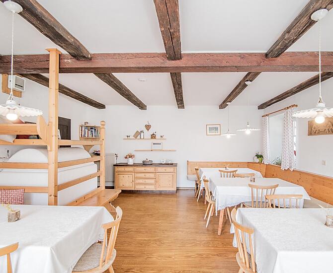- Frühstücksraum (Holzofen, WLAN, Bücher, Spiele)