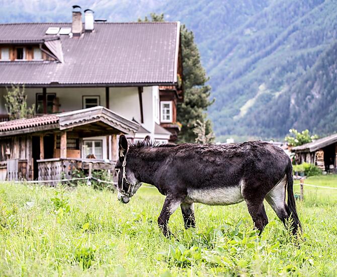Nebenan ein kleiner Stall, in dem die Kühe artgerecht im Laufstall leben. Esel, Hühner und Schweine gehören ebenfalls zu unserer Tierfamilie. Erleben Sie authentischen Südtiroler Urlaub inmitten grüner Wiesen, umgeben von einer beeindruckenden Bergkulisse. Ländliche Idylle und Stadtnähe – der Hof liegt nur acht Minuten von der Autobahnausfahrt Sterzing entfernt und bietet Erholungsuchenden, Familien und Naturfreunden ein echtes Stück Südtiroler Lebensgefühl. Erreichen Sie die Altstadt Sterzing in kurzer Zeit – mit dem Bus, Fahrrad oder bei einem gemütlichen Spaziergang.