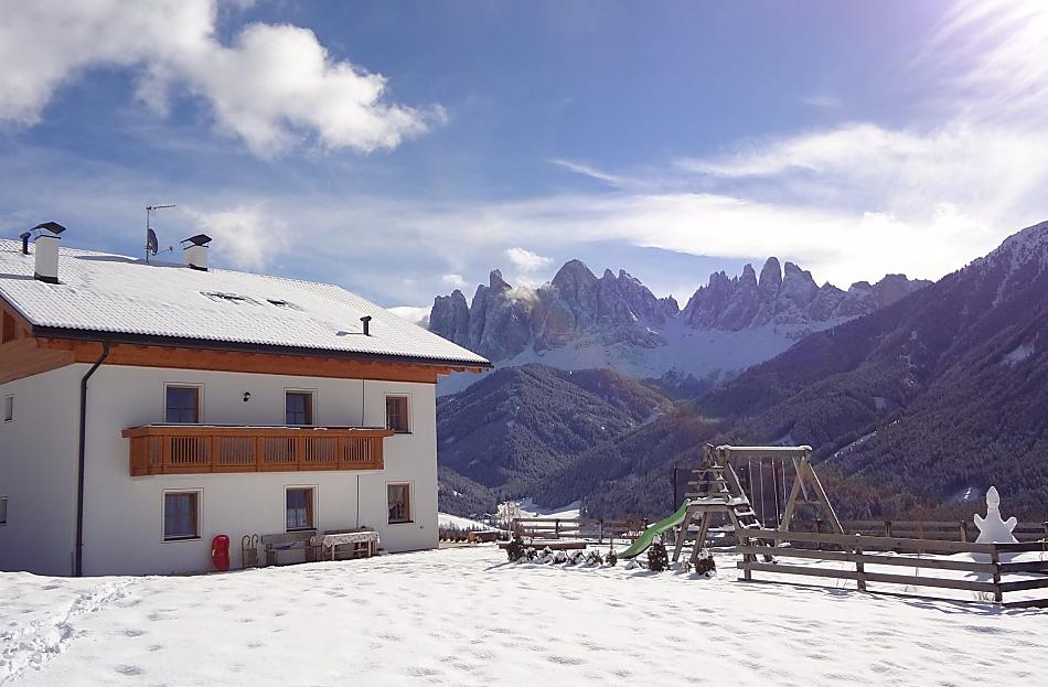 An den Sonnenhängen des schönen Villnössertals liegt unser schöner Bergbauernhof. Auf 1400 m Meereshöhe können Sie die spektakuläre Bergkulisse der Geislerspitzen im Naturpark Puez-Geisler, Teil der Dolomiten und Unesco-Welterbe, bewundern.