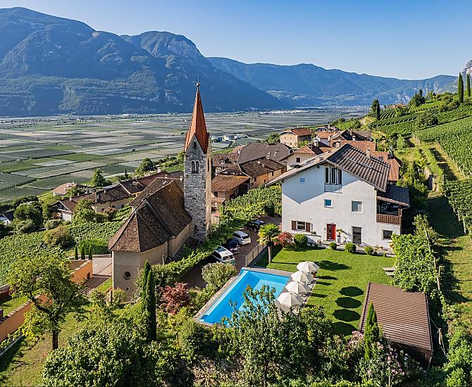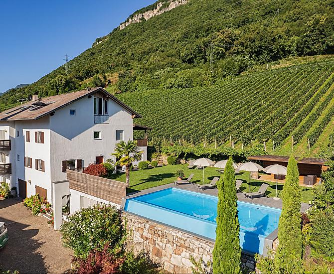 Fühlen Sie sich in Ihren Ferien in den großen Ferienwohnungen mit Schwimmbad und großer Liegewiese inmitten eigener Weinberge wie zu Hause und erleben Sie Südtirol von seiner schönsten Seite. Unsere bäuerlichen Produkte runden Ihre Ferien kulinarisch ab.