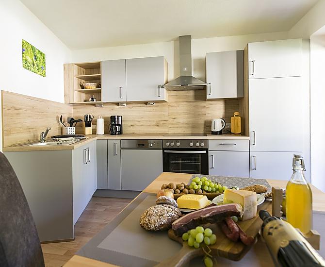 - Hofeigene Produkte beim Frühstück: Milch, Joghurt, Käse, Butter, Speck, Würste, Eier, Fruchtaufstriche, Sirup, Fruchtsäfte, Trockenobst, Gelees, Eingelegtes, Brot, Backwaren, Frisches Gemüse je nach Saison, Frisches Obst je nach Saison