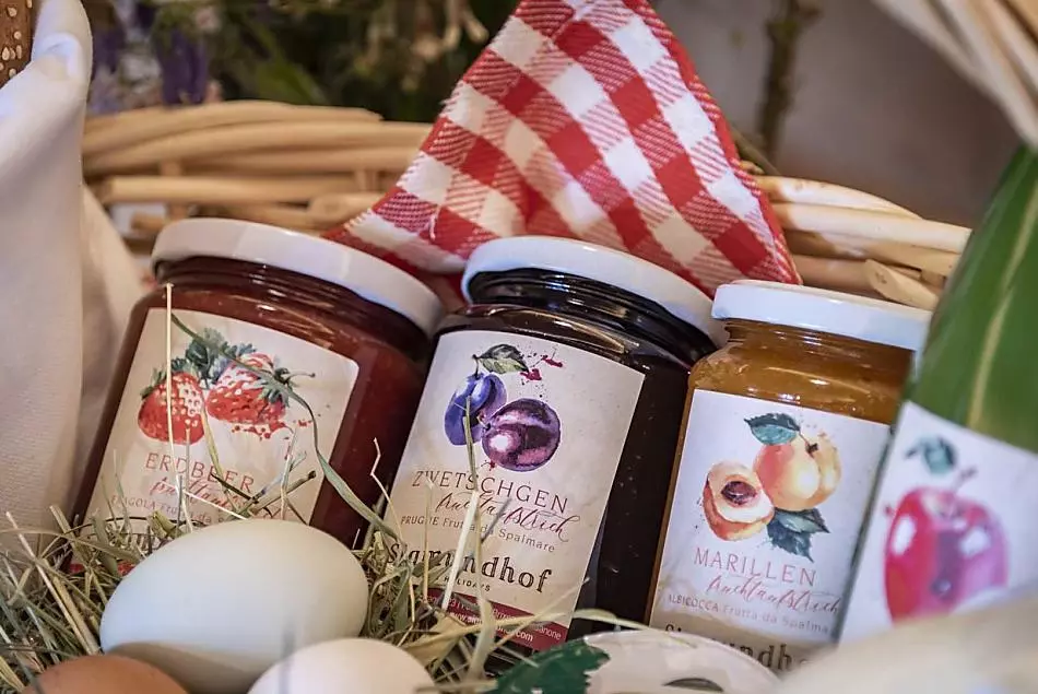 - Fruchtaufstriche (Erdbeere Fruchtaufstrich, Himbeere Fruchtaufstrich, Jostabeere Fruchtaufstrich, Marille Fruchtaufstrich, Preiselbeere Fruchtaufstrich, Rote Johannisbeere Fruchtaufstrich, Zwetschge Fruchtaufstrich)