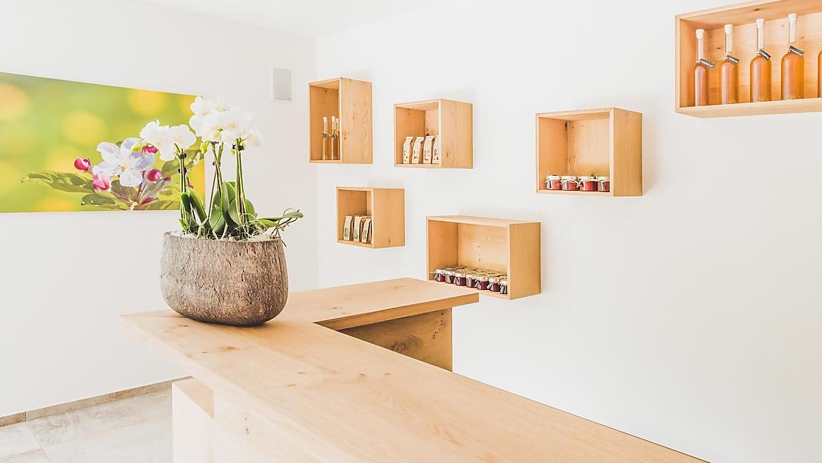 - Hofeigene Produkte beim Frühstück: Fruchtaufstriche, Sirup, Fruchtsäfte, Trockenobst, Eingelegtes, Kräutertee, Backwaren, Frisches Obst je nach Saison