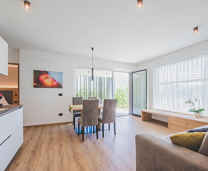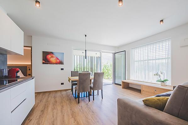 Freuen Sie sich auf einen Urlaub inmitten unserer Obstwiesen in einer sehr ruhigen, aber doch zentralen Lage. Unsere Ferienwohnungen sind modern und stilvoll eingerichtet, mit vielen natürlichen Materialien und harmonischen Farben. Die großzügigen Verglasungen locken die Natur in den Raum und geben ein besonderes Gefühl der Freiheit. Jede Wohnung verfügt über eine eigene, großzügige Terrasse mit Sitzgarnitur und Liegestühlen, wo Sie an lauen Sommerabenden Ihren Urlaubstag ausklingen lassen können.