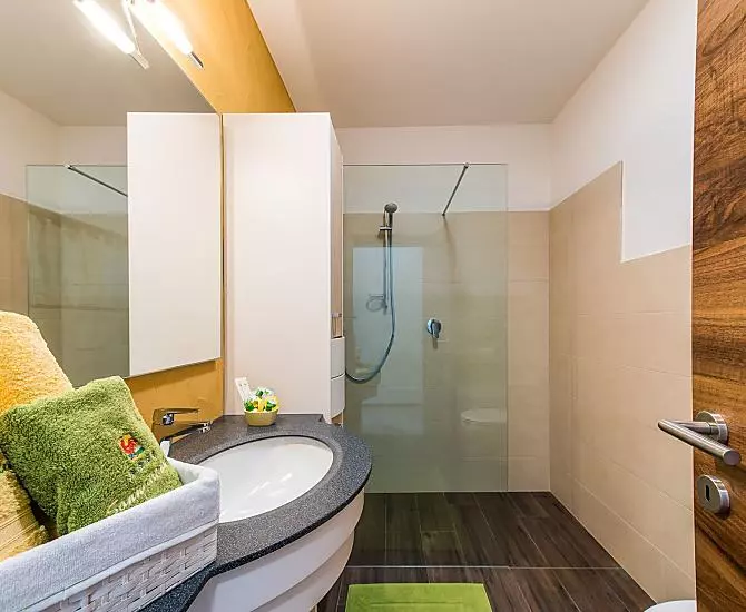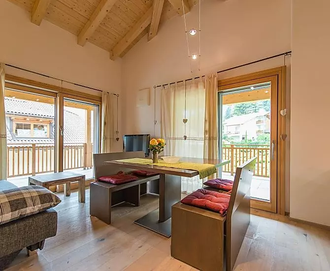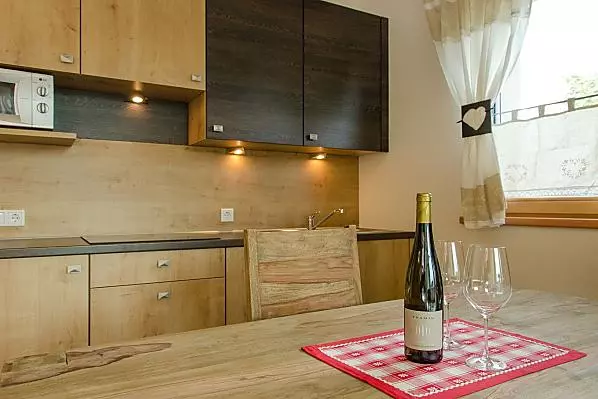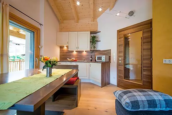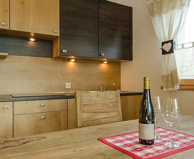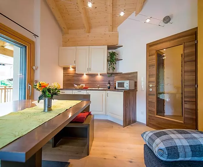 Mit sehr viel Liebe haben wir die neuen Ferienwohnungen im typischen Landhausstil eingerichtet. Dazu verwendet wurden – je nach Wohnung – gesundheitsförderndes, einheimisches Zirmholz, Fichtenholz und gebürstetes Altholz. Wir haben die Natur ins Haus geholt.