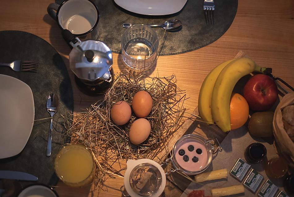 - Aufenthaltsraum und Frühstück direkt im Stall mit Blick zu den Tieren