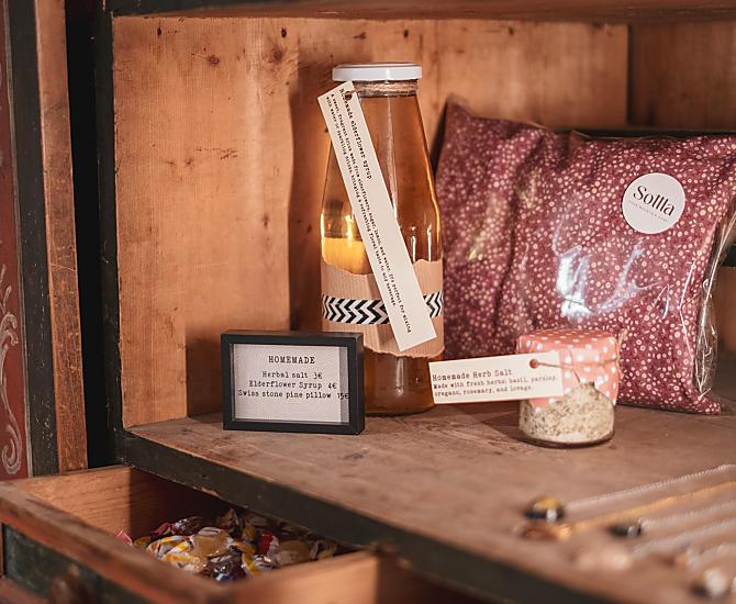 - Sirup (Holunderblütensirup, Pfefferminzsirup, Roter Johannisbeersirup)