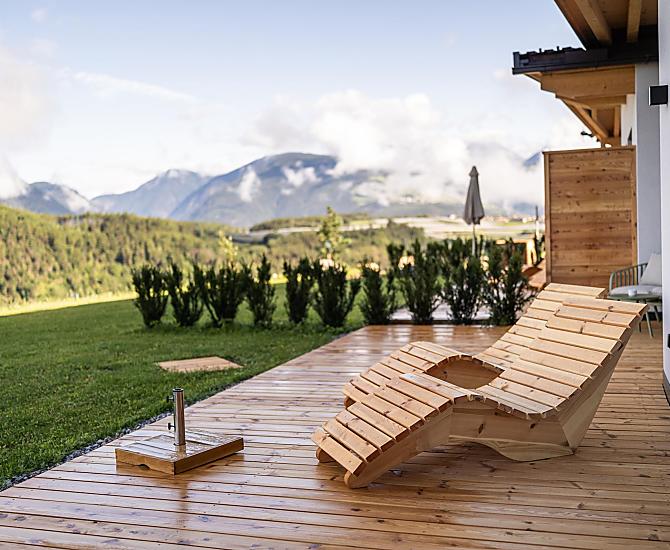 Unser Hof liegt oberhalb von Brixen auf dem Ploseberg, auf 880 m Meereshöhe. Wir sind umgeben von Wiesen und Wäldern, die zum Entspannen einladen. Direkt aus den Chalets haben Sie einen wunderbaren Ausblick auf Berg und Tal. Besonders am Abend, bei Sonnenuntergang, zeigen sich die Berge von ihrer besten Seite. In unseren Chalets und Ferienwohnungen können Sie nach einer Wanderung in der Infrarot-Dampfsauna den Alltag hinter sich lassen. Die Kinder können sich auf unserem Spielplatz austoben und den Alltag auf dem Hof kennenlernen.