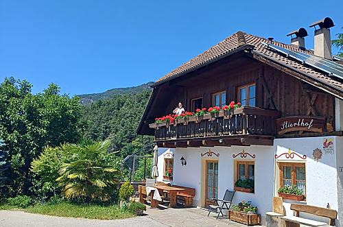 Der Stierlhof liegt auf ca. 900 Metern Meereshöhe, ist von Wiesen, Eichenwald, Apfelbäumen und auch Reben umgeben, mit schöner Aussicht auf die Berge und das nahe Dorf Unterinn.