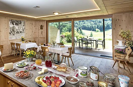 - Hofeigene Produkte beim Frühstück: Eier, Fruchtaufstriche, Sirup, Fruchtsäfte, Kräutertee, Kräutergewürze, Backwaren, Frisches Gemüse je nach Saison, Frisches Obst je nach Saison