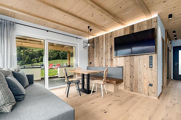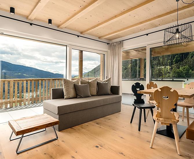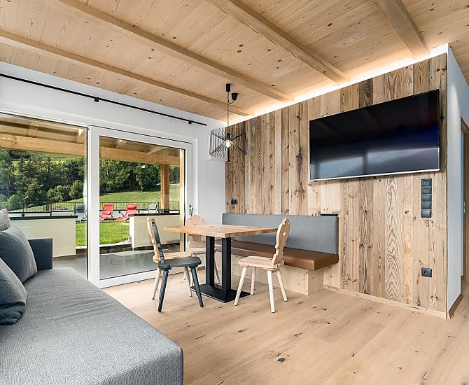 Unsere vier großzügigen Ferienwohnungen beeindrucken durch die komfortable und moderne Einrichtung, den gemütlichen Holzboden und besonders durch die riesigen Glasfassaden auf der Südseite, sodass unseren Gästen keine Wünsche offen bleiben und der Urlaub zur puren Erholung wird.