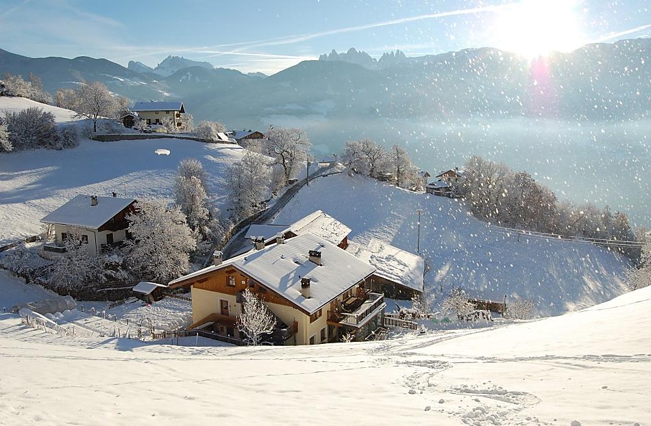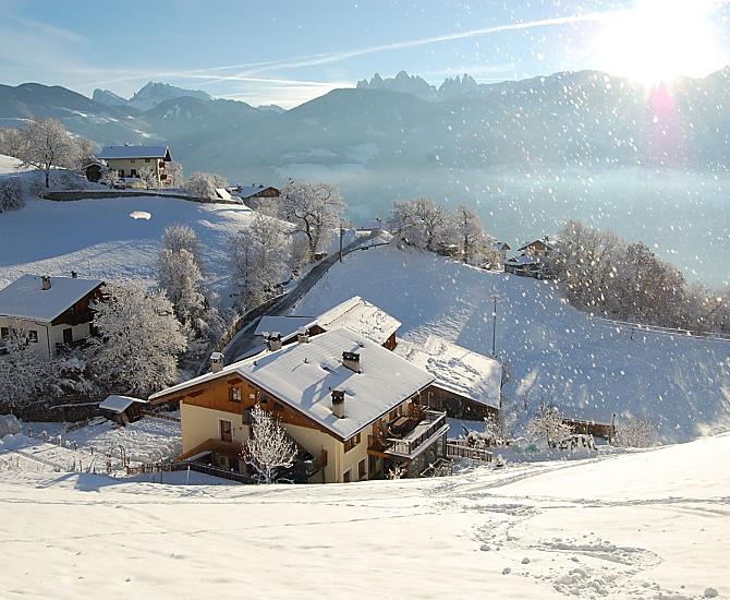Auf dem Thalerhof in Feldthurns, mit Panoramablick auf die schönen Dolomitenberge "Villnösser Geisler, Aferer Geisler, Peitler Kofl, Schlern ...", kann man Energie tanken, die Seele baumeln lassen und wieder in den natürlichen Lebensrhythmus zurückfinden.