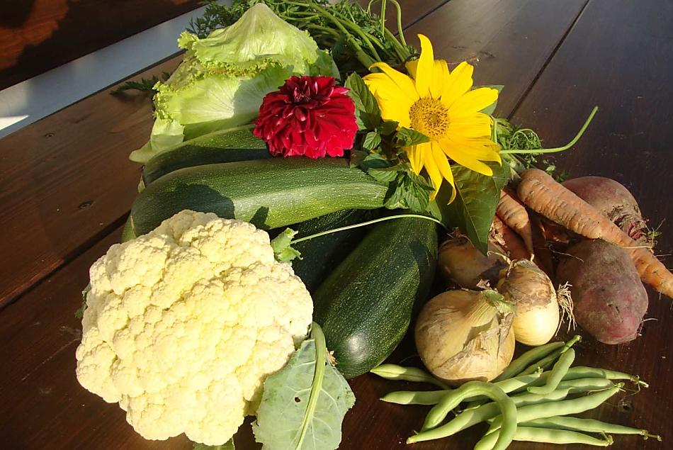 - Frisches Gemüse je nach Saison (Bohnen, Gurken, Karotten, Zucchini)