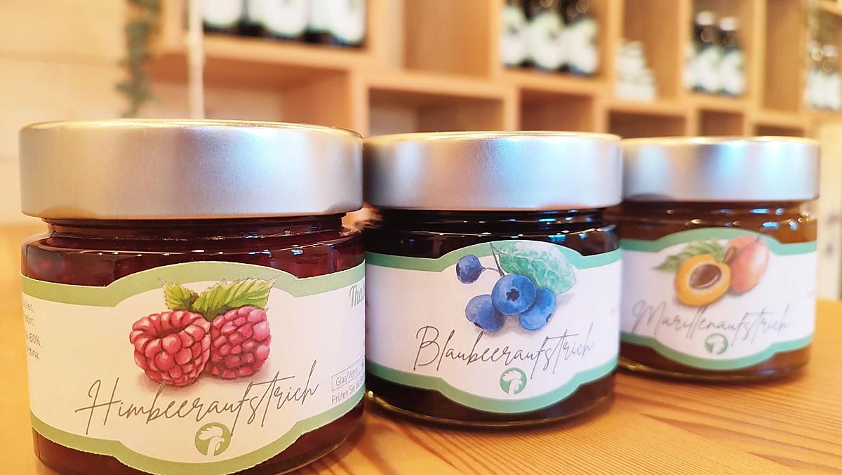 - Fruchtaufstriche (Blaubeere Fruchtaufstrich, Erdbeere Fruchtaufstrich, Himbeere Fruchtaufstrich, Marille Fruchtaufstrich)