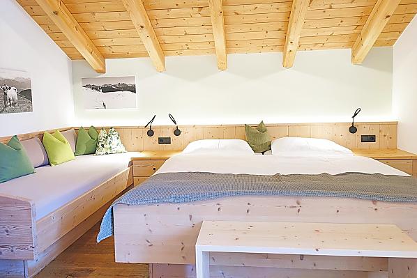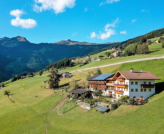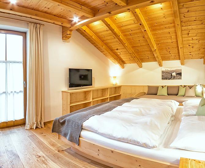 Dein ganz persönlicher Bauernhof im Herzen Südtirols! Genieße unbeschwerte Ferientage in einer unserer gemütlichen Ferienwohnungen. Die liebevolle Ausstattung mit viel Holz und Naturmaterialien sorgt für eine warme, heimelige Atmosphäre, in der du dich sofort wohlfühlst und den Alltag hinter dir lassen kannst. Bäuerin Erika verwöhnt dich mit einem köstlichen Frühstück und gesunden, hausgemachten Leckerbissen, die dir den Tag versüßen. Bauer Florian lädt dich ein, den bäuerlichen Alltag hautnah zu erleben und begleitet dich in den Wintermonaten auf eine geführte Schneeschuhwanderung auf seine eigene Alm.