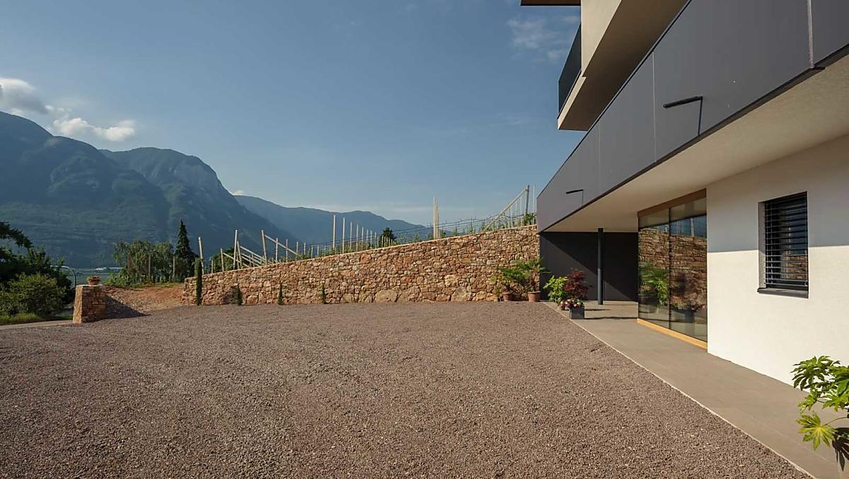 Über die Brennerautobahn A22 kommend nehmen Sie die Ausfahrt Neumarkt-Auer-Tramin. An der Kreuzung zur Südtiroler Weinstraße links Richtung Rungg und Kurtatsch abbiegen. Bei der St. Valentins Kirche weiter bis nach einer langgezogenen Rechtskurve bergseitig die Abzweigung nach Rungg kommt, hier rechts abbiegen. Auf der linken Seite sehen Sie unsere moderne Hofstelle umgeben von den typischen Kalksteinmauern und biegen in den großen Hofraum ein.
