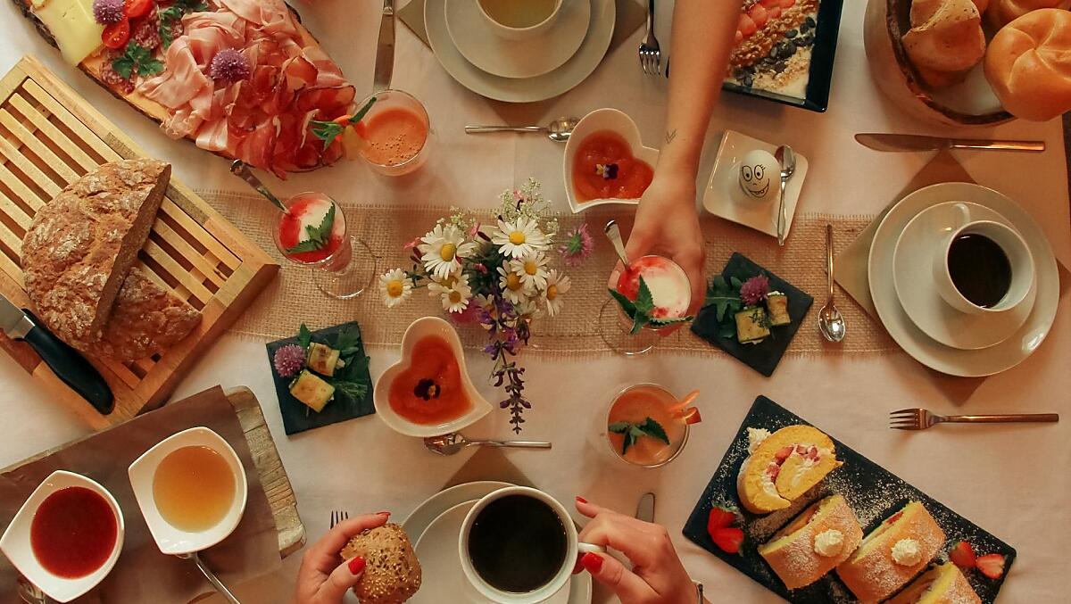 • Hofeigene Produkte beim Frühstück: Milch, Joghurt, Butter, Andere Milchprodukte, Eier, Fruchtaufstriche, Sirup, Fruchtsäfte, Eingelegtes, Frisches Gemüse je nach Saison, Frisches Obst je nach Saison