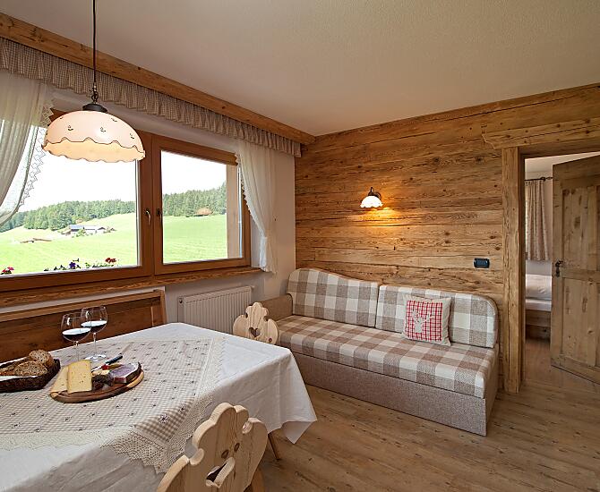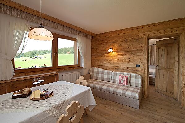 Vier äußerst geräumige, sonnendurchflutete, traditionell mit viel Altholz eingerichtete und vor allem gemütliche Ferienwohnungen warten darauf, belebt zu werden.