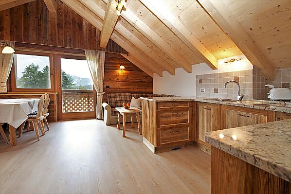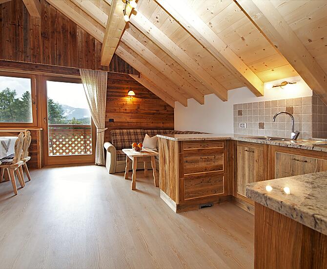 • Gemütliche geräumige Wohnungen mit zeitlosem Altholz eingerichtet