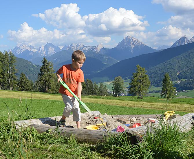 Hier auf unserem sonnigen Hochplateau im Pustertal, ohne Durchfahrtsverkehr, nahe am Kronplatz lässt sich die Ruhe genießen.
