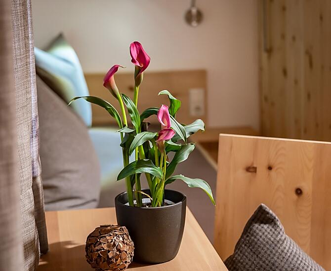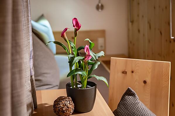 Genießen Sie die göttliche Ruhe in den wohligen, komfortablen Ferienwohnungen - teils mit natürlichem, braunem Lehmverputz für ein gesundes, heimeliges Wohngefühl.