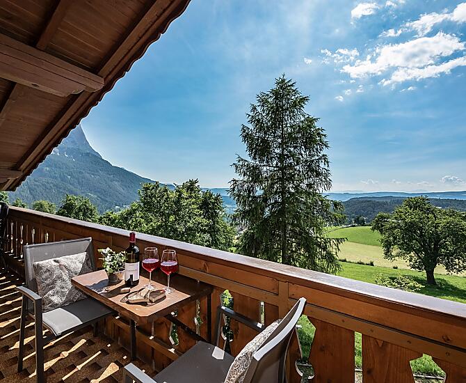 Den weitläufigen Außenbereich, den Freiraum in der natürlichen Umgebung des Bauernhofes, das morgendliche Vogelgezwitscher, die gewohnten, täglichen Geräusche der Hofarbeit, den Geruch frisch geschnittenen Grases, die Abendstimmung am Balkon bei einem Glas Wein, den Sonnenuntergang, die Rückzugsplätze für Erwachsene zum Ausspannen, den Ausblick auf die Berge - das alles können Sie bei uns genießen.
