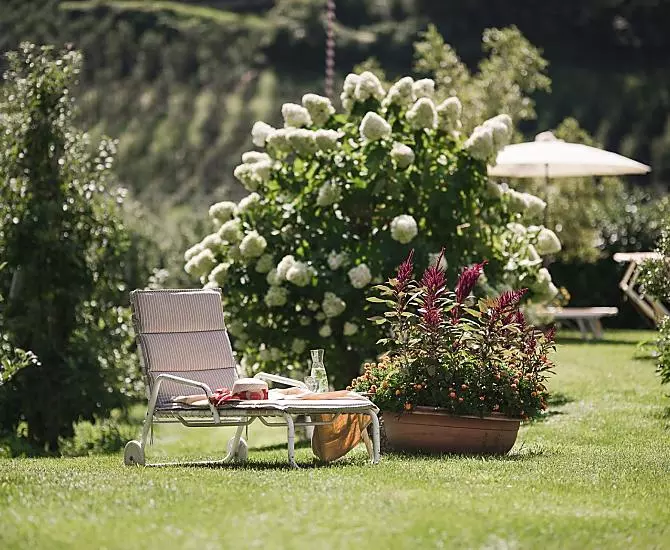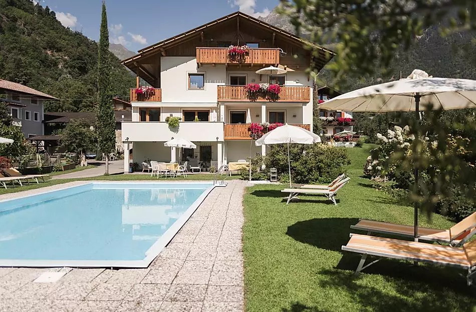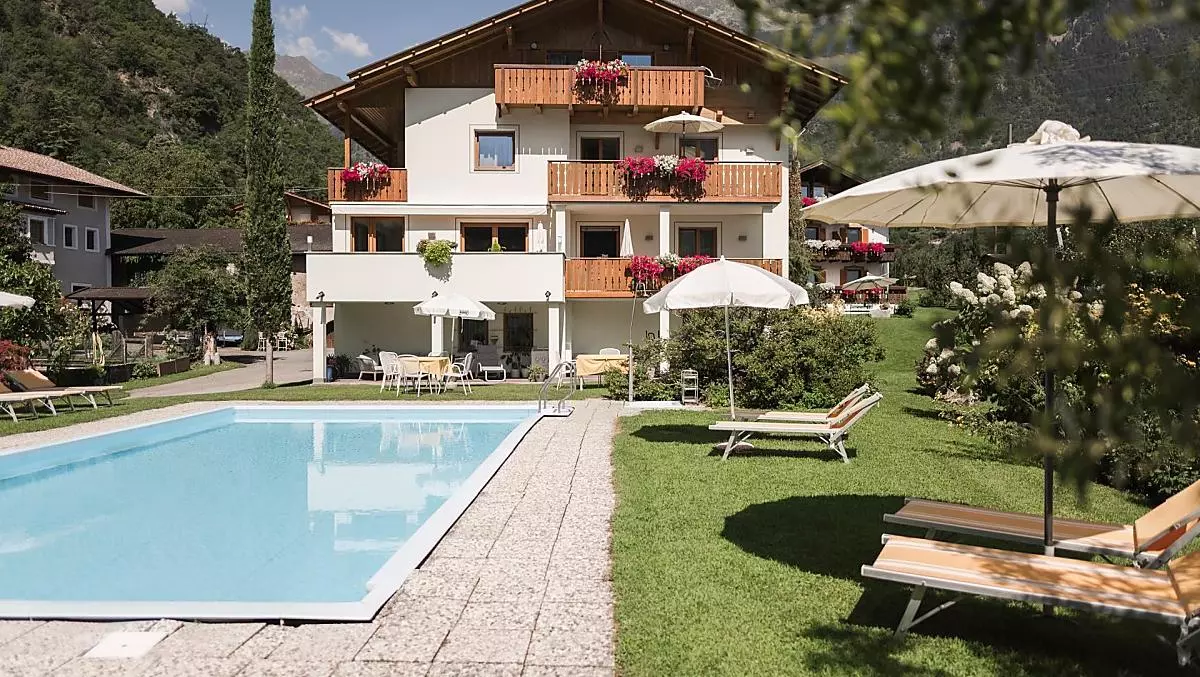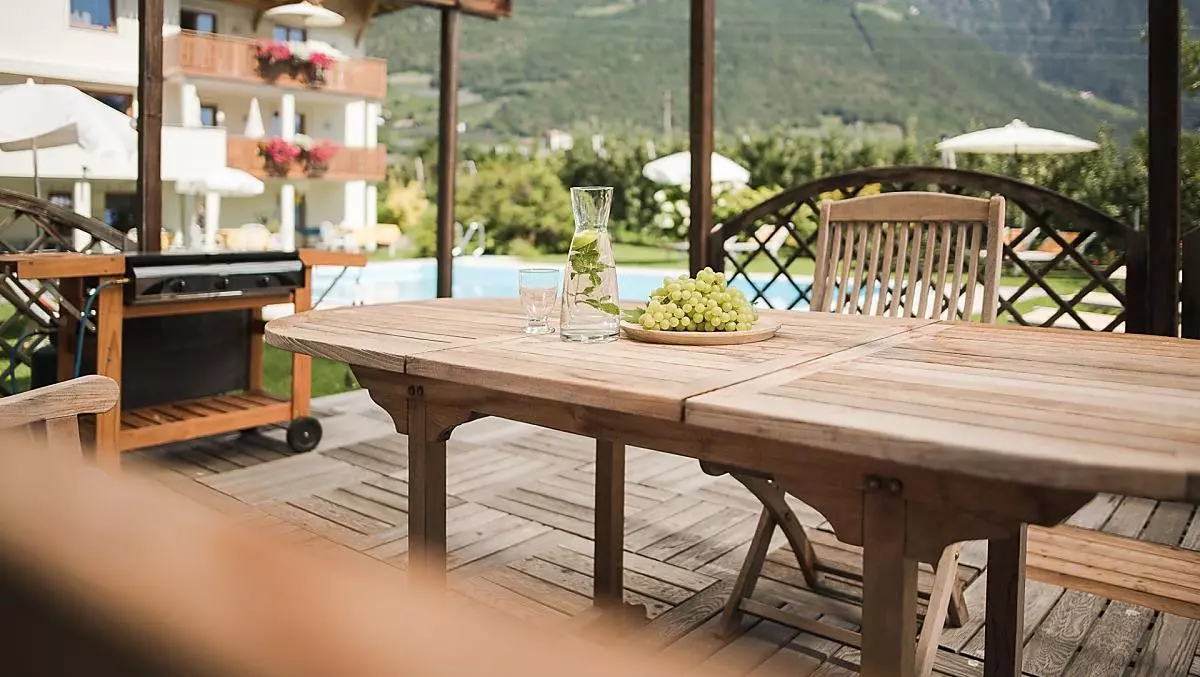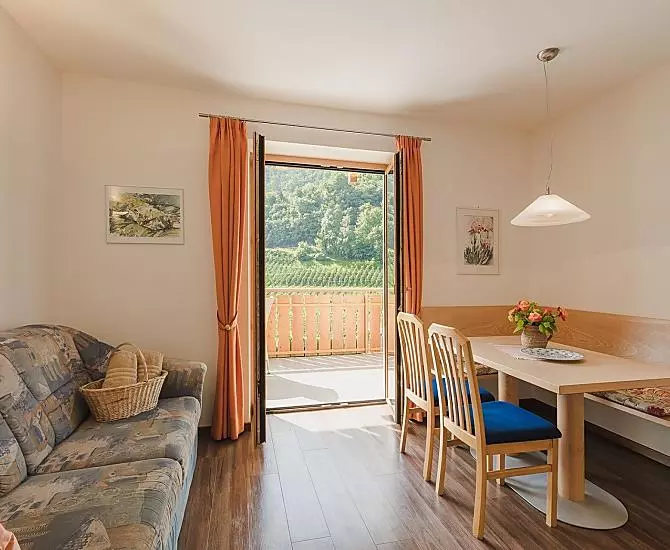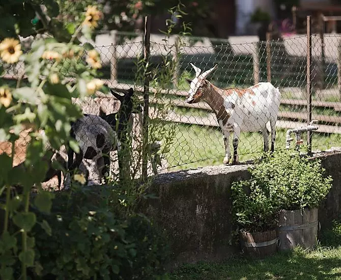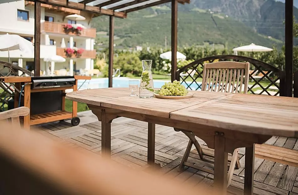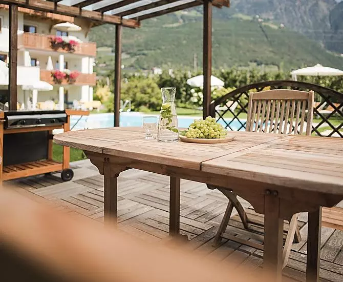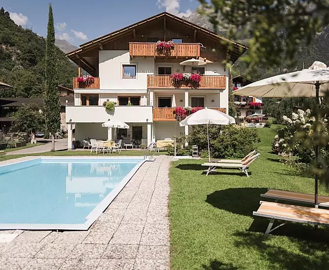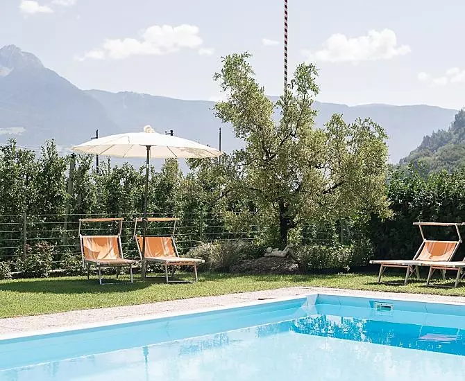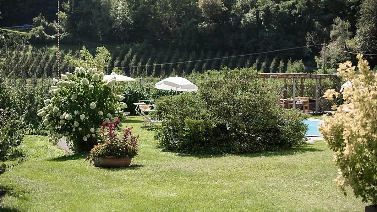 Wir halten uns am liebsten unter freiem Himmel auf. Deshalb sind wir der ideale Urlaubsort für Aktivurlauber und Ruhesuchende. Durch unsere ideale Lage kommen wir dem Wunsch all jener nach, die mitten im Grünen urlauben und dennoch nicht auf die Nähe zu den umliegenden Zentren verzichten möchten. Die großzügige Hofanlage ohne Durchfahrtsstraße ist idealer Ausgangspunkt für viele Waal-, Wander- und Radwege. In nur einer Gehminute erreichen Sie die Haltestelle des Citybusses, welcher Sie bequem ins Zentrum von Algund und Meran (3 km) bringt.