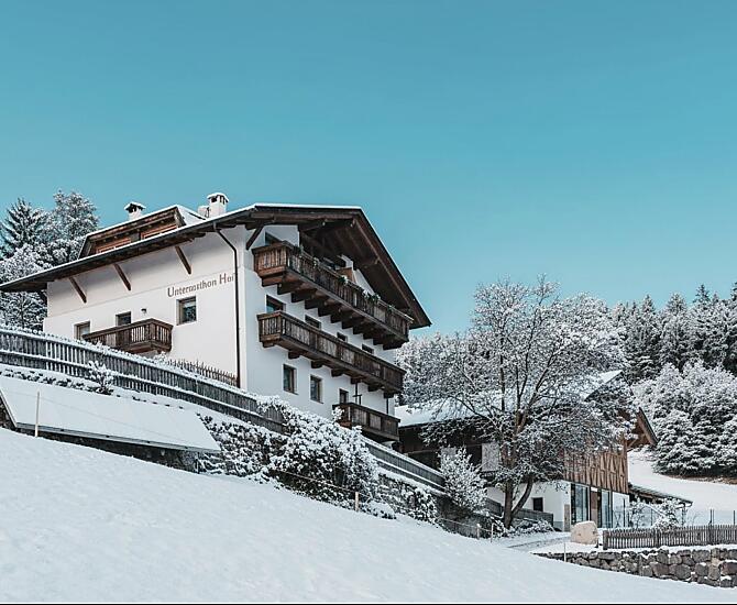Nehmen Sie auf der Brennerautobahn A22 die Ausfahrt Bozen Süd und fahren weiter auf der Schnellstraße MeBo in Richtung Meran. Dort nehmen Sie die Ausfahrt Meran Süd und folgen der Beschilderung in Richtung Hafling. Ab Hafling folgen Sie der Straße in Richtung Vöran für weitere 8 km bis zum Dorfkern von Vöran. Zweigen Sie nun rechts in Richtung Kirche ab. An der Kirche halten Sie sich links, am Gemeindegebäude und an der Grundschule vorbei, und biegen dann rechts in den Bachweg ein. Folgen Sie dem Weg für circa 700 m und nehmen dann die erste Auffahrt links. Nach 200 m sind Sie am Untermathonhof angekommen.