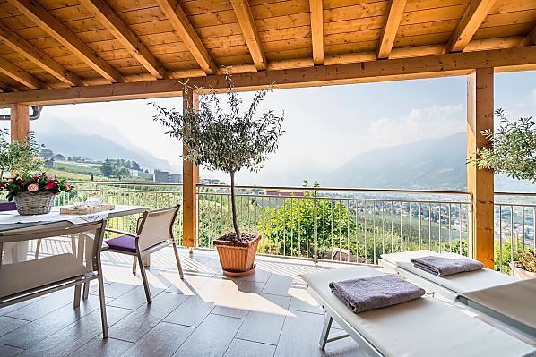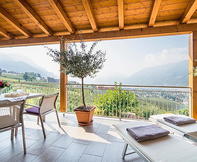Die ruhige Lage oberhalb Meran und die Aussicht auf die Bergkulisse sind einzigartig. Die Gäste schätzen den idealen Ausgangspunkt für Wanderungen. Ins schmucke Dorfzentrum läuft man in 15 Minuten durch Obstwiesen und in das Meraner Stadtzentrum mit seinen berühmten Laubengassen flaniert man in 40 Minuten. Die Bushaltestellen und Seilbahnen sind in der Nähe. Ebenso ein E-Bike Verleih, Supermarkt, Bäcker, Metzger, Friseur und Geschäfte.