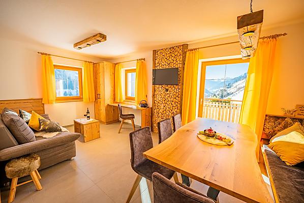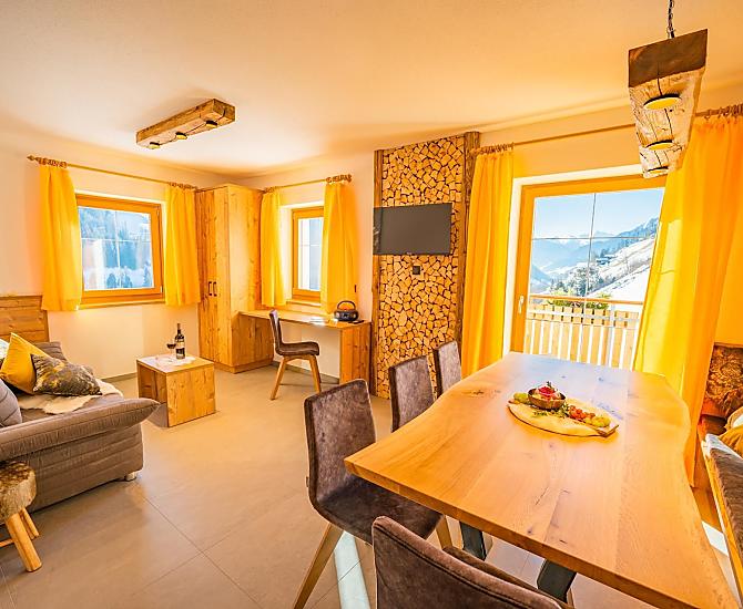 Sie wollen sich schon bei der Ankunft wohlfühlen und die Natur von ihrer schönsten Seite erleben? Entspannen und doch den erlebnisreichen Alltag am Bauernhof hautnah miterleben? Laufen, rennen, toben, spielen – nichts unversucht lassen? Den Tag mit einem leckeren Frühstückskorb beginnen und die Sonne auf dem Balkon genießen? Dann sind Sie am Voppichlhof genau richtig. Unser Hof befindet sich in ruhiger Lage und ist umgeben von Wiesen und Wäldern. In den fünf Ferienwohnungen genießen Sie das herrliche Bergpanorama. Direkt vor unserer Haustür können Sie im Winter und im Sommer zahlreiche Wanderungen in den Ahrntaler Bergen unternehmen oder den wunderbaren Rundum-Panoramablick genießen und sich ausruhen. Für Sportsfreunde ist das Ski- und Wanderparadies Klausberg in ca. fünf Autominuten vom Hof aus zu erreichen. Familie Lechner würde sich freuen, Ihren Urlaub zu verzaubern und Sie ein wenig zu verwöhnen. Ankommen, wohlfühlen und sich verwöhnen lassen.