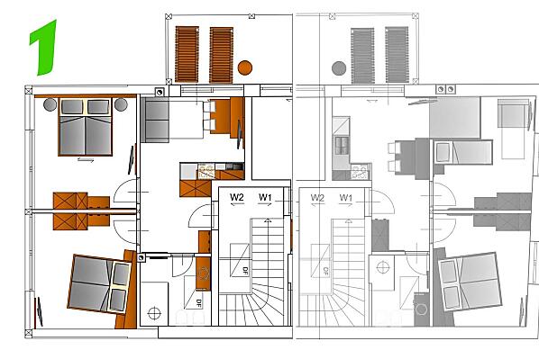 2-5 Personen (5 fixe Betten) 48m²