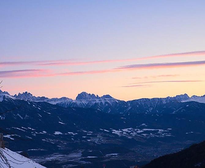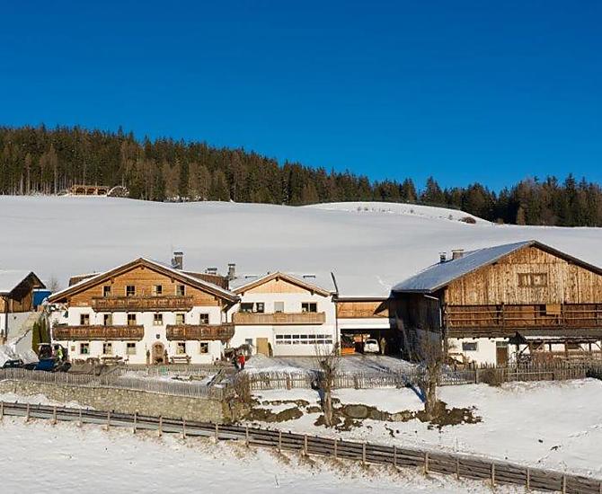 Unser Bauernhof liegt sehr sonnig am Eingang des beliebten Wandergebietes Altfasstal. Lassen Sie Ihr Auto einfach stehen – ab Hof können Sie zu gemütlichen Wanderungen aufbrechen. Das Ski- und Wandergebiet Gitschberg-Jochtal ist zu Fuß oder mit dem Skibus einfach zu erreichen. Auch das Ortszentrum von Mühlbach erreicht man bequem mit der Seilbahn. Von unseren großzügigen Ferienwohnungen genießen Sie einen herrlichen Blick auf die Geislerspitzen, den Peitlerkofel und das Schlernmassiv.