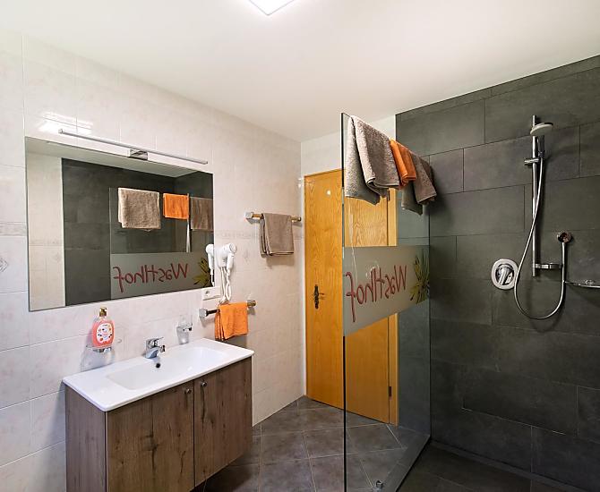 - Hofeigene Produkte beim Frühstück: Milch, Joghurt, Käse, Butter, Speck, Geselchtes Rindfleisch, Würste, Eier, Honig, Fruchtaufstriche, Frisches Gemüse je nach Saison