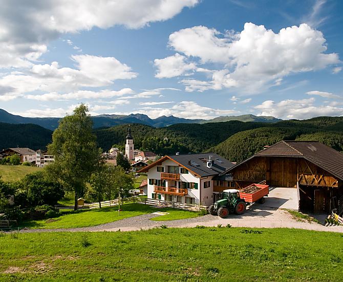 Der Wegmacherhof ist ein Erbhof und befindet sich seit mehr als 200 Jahren im Besitz der Familie Gabloner, bestehend aus drei Generationen. Er liegt sehr zentral, in der wohl schönsten Ecke von Kastelruth und ist auch ohne Auto leicht erreichbar. Die Großeltern Sepp und Moidl bauten 1984 einen neuen Laufstall und stellten die heimische Tierrasse Pinzgauer auf die Holsteinrasse (Schwarzbunte) um. Eine gute Milchqualität und eine lange Lebensdauer der Tiere sind uns allen seit Jahren ein Anliegen. Mehrere Auszeichnungen zeugen davon. Edith, unsere älteste Kuh, wurde mehr als 18 Jahre und bekam 15 Kälbchen, wovon wir heute noch welche im Stall haben. Die Nachzucht macht die Sommerferien auf der Seiser Alm und genießt die wunderschöne Bergwelt, wie den Lang- und Plattkofel und den Schlern. Wir arbeiten gentechnikfrei und unsere Hühner legen täglich ein Frühstücksei. Eine alte Streuobstwiese und ein traditioneller Bauerngarten spiegeln unsere Liebe zur Natur und zur Landwirtschaft wieder.