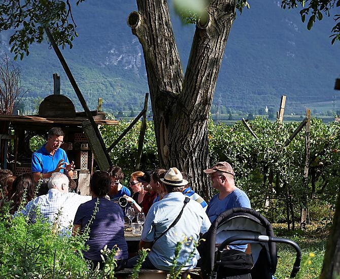 Unser renovierter Bio-Weinhof befindet sich inmitten der Rebgärten im historischen Weindorf Margreid an der Südtiroler Weinstraße – direkt am Übergang von der tirolerischen zur italienischen Kultur. Wir betreiben seit 25 Jahren Weinanbau ohne Pflanzenschutz, ohne Traktor, mit pilzresistenten Rebsorten.