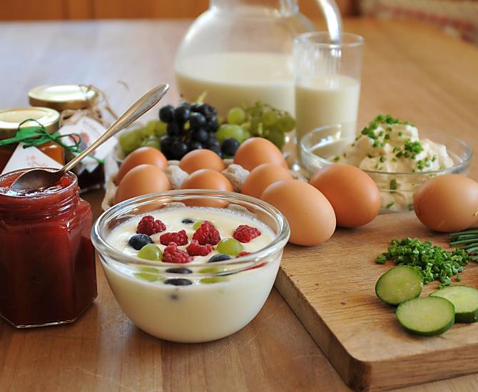 Milch, Joghurt, Eier, Fruchtaufstriche, Sirup ...