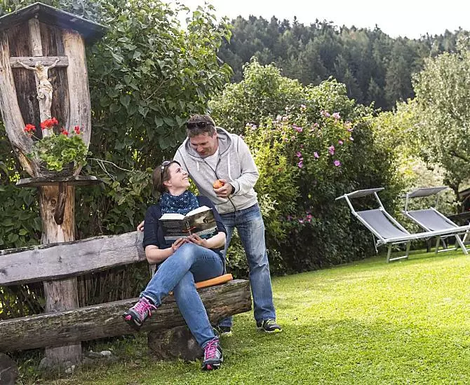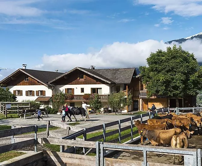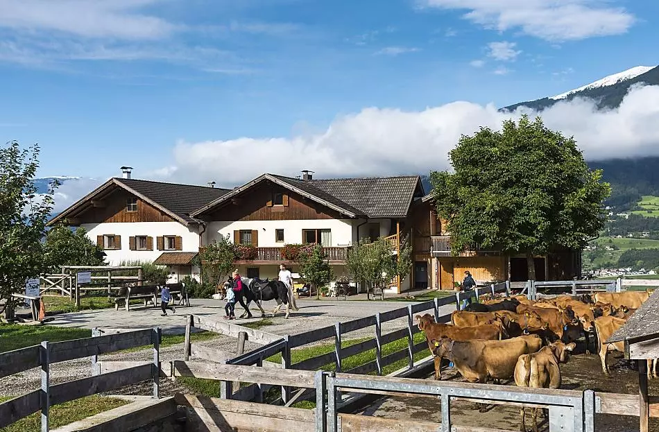 Unser denkmalgeschützter Hof liegt in Klerant, dicht an unserem Hausberg Plose, einem Paradies für Aktivurlauber. Ein Highlight sind unsere vielen, reizvollen Angebote für Reiter und solche, die es werden wollen. Unser hofeigener Reitplatz und unsere Reithalle eignen sich bestens für die ersten Reitversuche – und für die Kleinsten bieten wir sicheres und geführtes Ponyreiten an. Die Liebe zur Natur, unser ausgeprägtes ökologisches Bewusstsein und der artgerechte Umgang mit den Tieren prägen tagtäglich unsere Arbeit und unser Leben. Unser Sauna- und Wohlfühlbereich mit finnischer Sauna, Bio-Sauna, Infrarot-Wärmekabine, Ruheraum und Kälte-Außenbereich ist ein echtes Highlight.